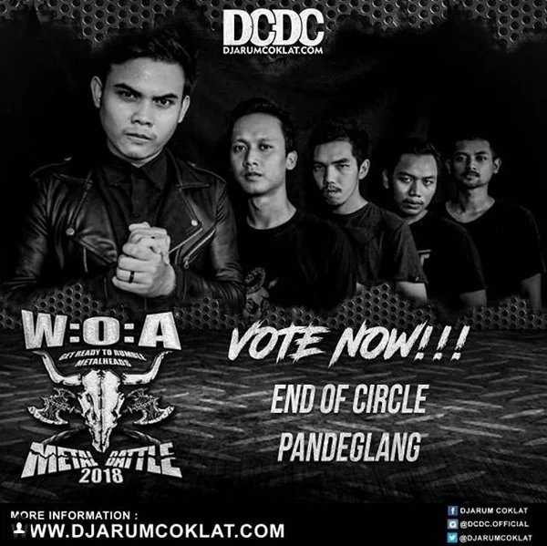 Caranya mudah kok, kalian cukup merepost flyer End Of Ciecle di akun Instagram pribadi kalian. Tetapi sebelumnya, pastikan dulu kalian sudah memfollow dan tag @dcdc.official dan @wackenmetalbattle.indonesia. Sertakan pula tagar #IVoteForEndOfCircle, #WackenMetalBattleIndonesia2018, #DjarumCoklatDotCom, dan #DCDC.